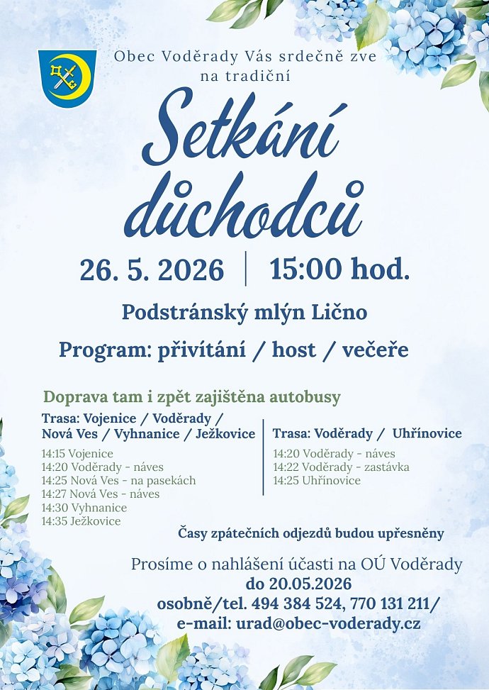 - Návrh rozpočtu obce Voděrady na rok 2026 (vyvěšeno 28.11.2025)
